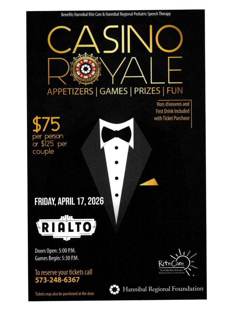 Come to the Rialto for an evening of appetizers, games, prizes and fun all to benefit Hannibal Rite Care and Hannibal Regional Pediatric Speech Therapy! To reserve your tickets call 573-248-6367