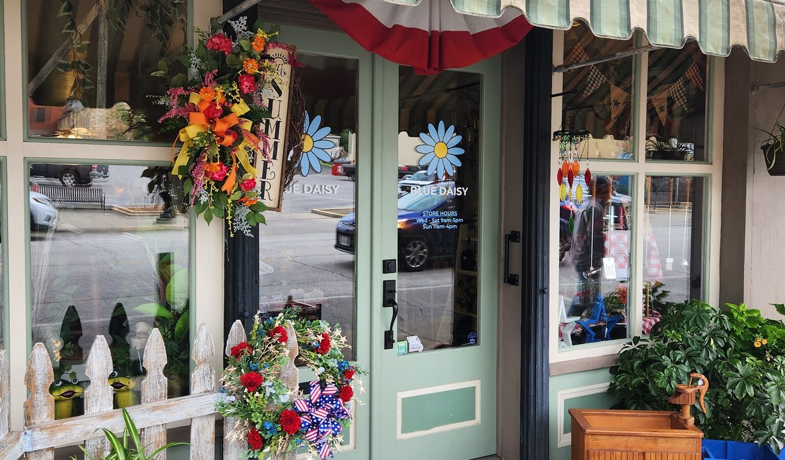 Blue Daisy is a small shop in downtown Hannibal Mo. We specialize in floral, Home decor, Vintage, and hand crafted items from various vendors and artisans.