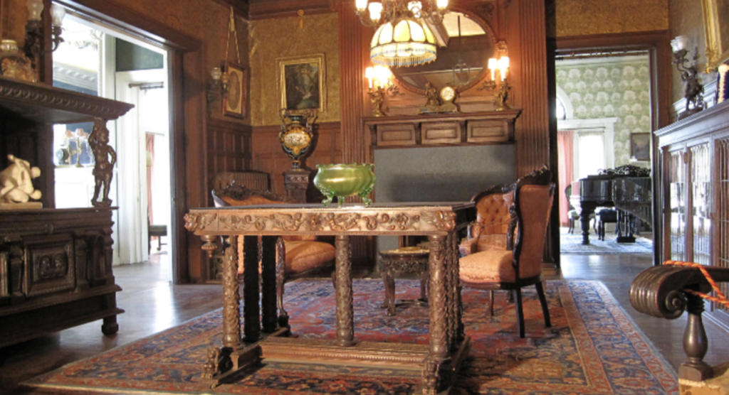 The family lived in Rockcliffe until Mr. Cruikshank passed in 1924. It was then closed, vacant and abandoned for the next 43 years. In 1967, Rockcliffe was scheduled for demolition, but just days before, its 30 rooms were saved. It is now open to the public for guided tours, and, for a fortunate few, to stay the night in the Museum. Decorated in the Late Victorian and Art Nouveau styles, most of the original antique furnishings, gas/electric combination lighting fixtures, high-end plumbing fixtures, and personal effects of the original family were preserved and are on display. Rockcliffe is filled with rich mahogany, and quarter sawn oak appointments, magnificent L.C. Tiffany and Palladian windows, and the finest interior decorations from America and Europe. Many of the unique architectural features of the Mansion would be difficult, if not impossible, to duplicate today.