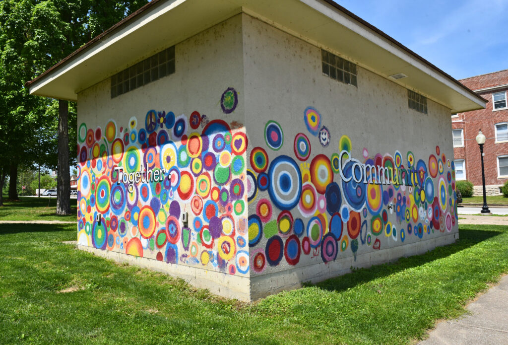 * As part of the 2023 Juneteenth celebration, local artist, Steve Schister, led the project created by Hannibal youth groups. The artwork continues on all 4 sides of the building.