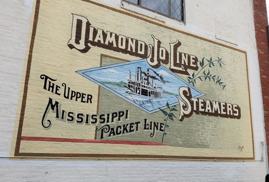 * The Diamond Jo Riverboat sign is one of several ghost signs in Hannibal. It’s designed to look like the advertisements of old. This one is in honor of the riverboats that used to dock here, making Hannibal one of the busiest ports on the Mississippi River in its early days.