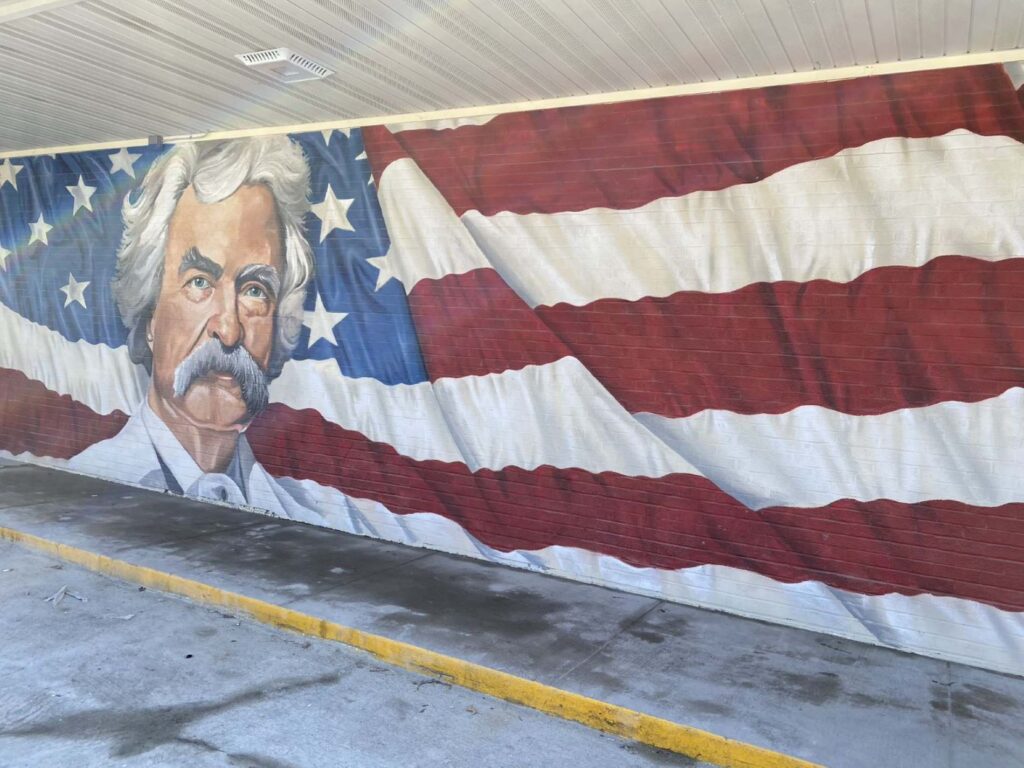 * Sam Clemens starts our tour on a road befitting his fame: Mark Twain Avenue. This portrait of the author at his prime is set against the backdrop of the American Flag, which also seems fitting for America’s Hometown.