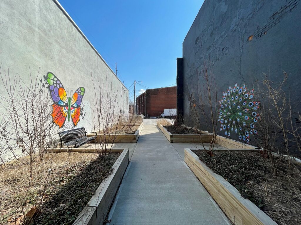 * Tucked away between two buildings on Broadway is a surprising little oasis with park benches and two paintings – a butterfly and a peacock – waiting for your poses.